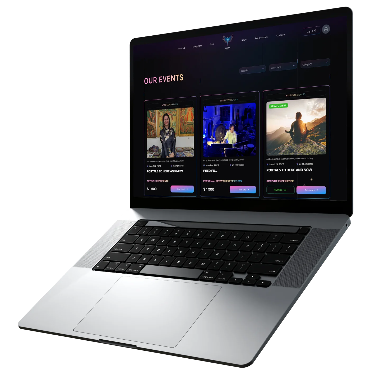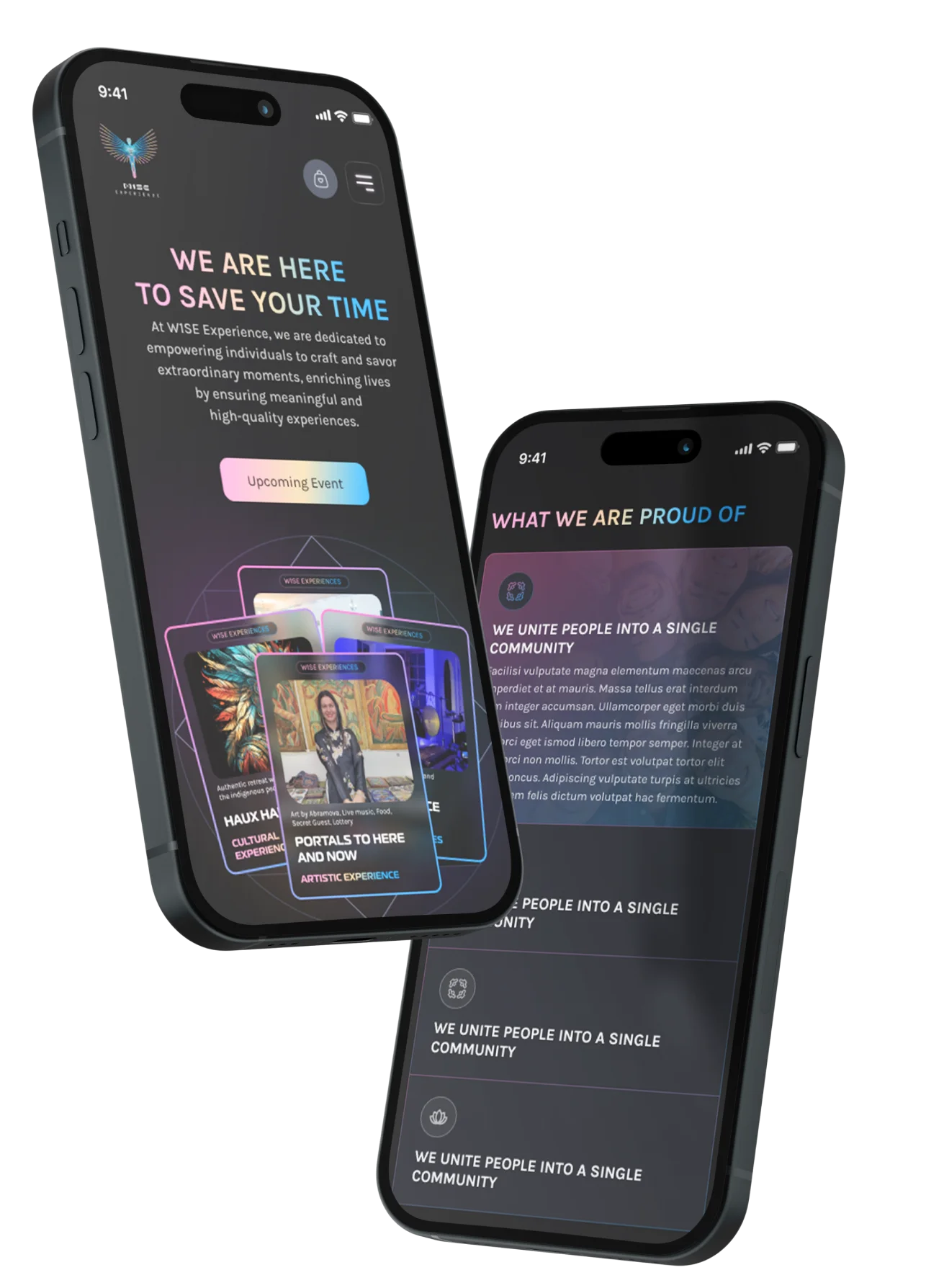 The concept behind the W1SE Experience website design focuses on creating a sense of the project’s premium and exclusive nature. We used elegant visual elements and modern design solutions to highlight the high status of our platform. The main goal was to make the website appealing to users, showcasing its sophistication and innovation.