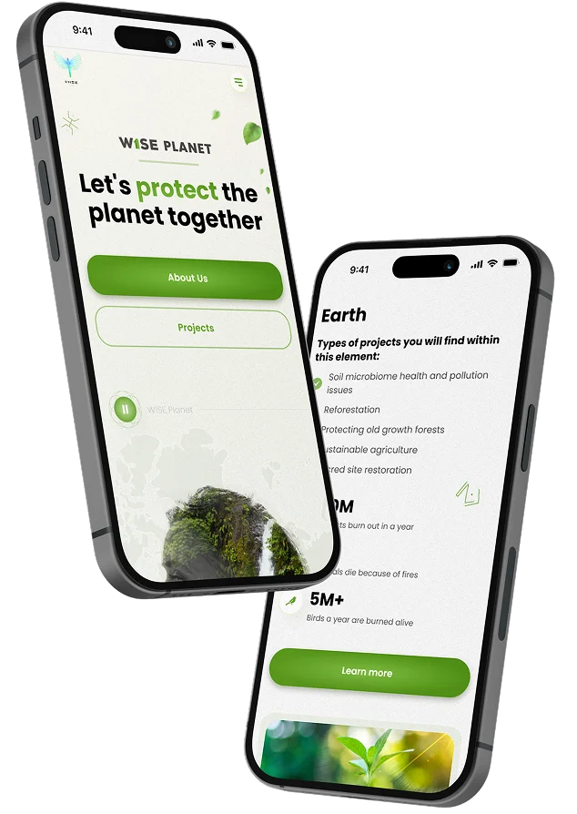 W1SE Planet is a platform that unites people around a shared purpose — protecting nature. We designed a website that communicates this mission through a visual language rooted in the symbolism of the five elements, paired with a user-friendly structure and intuitive content management. It’s more than just a landing page for an eco-initiative — it’s a living space for knowledge, action, and connection.
