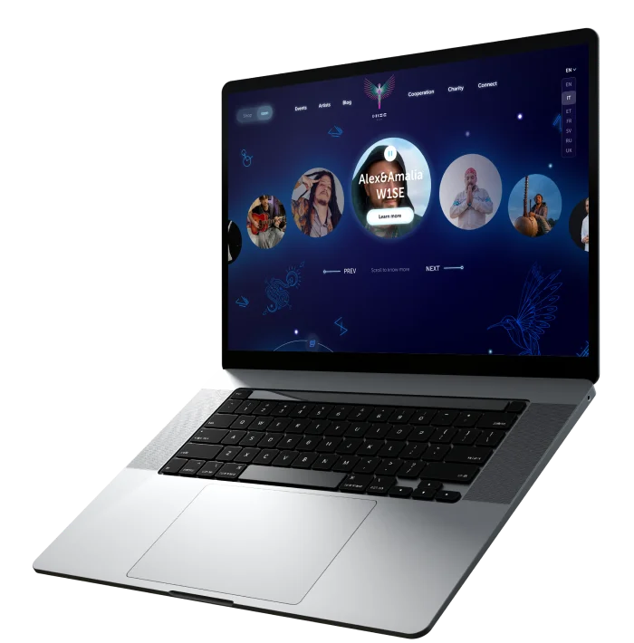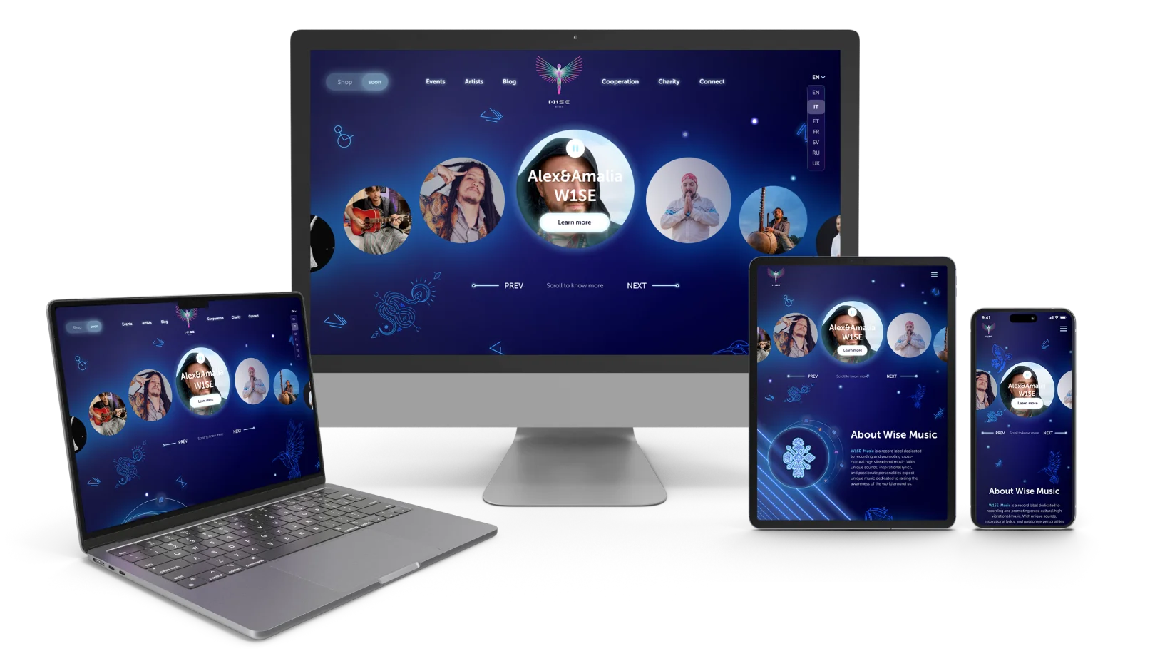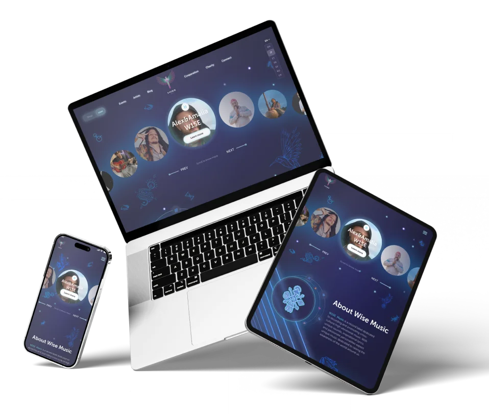 Our design and development laid the foundation for the success of the W1SE Records project. We created an interface that not only attracts visually but also ensures convenience and efficiency in use. Thanks to our approach, artists can easily present their music and convey their emotions and stories to listeners worldwide. Our solutions have enabled W1SE Records to become a platform that unites diverse cultures and gives musicians the opportunity to achieve global recognition.